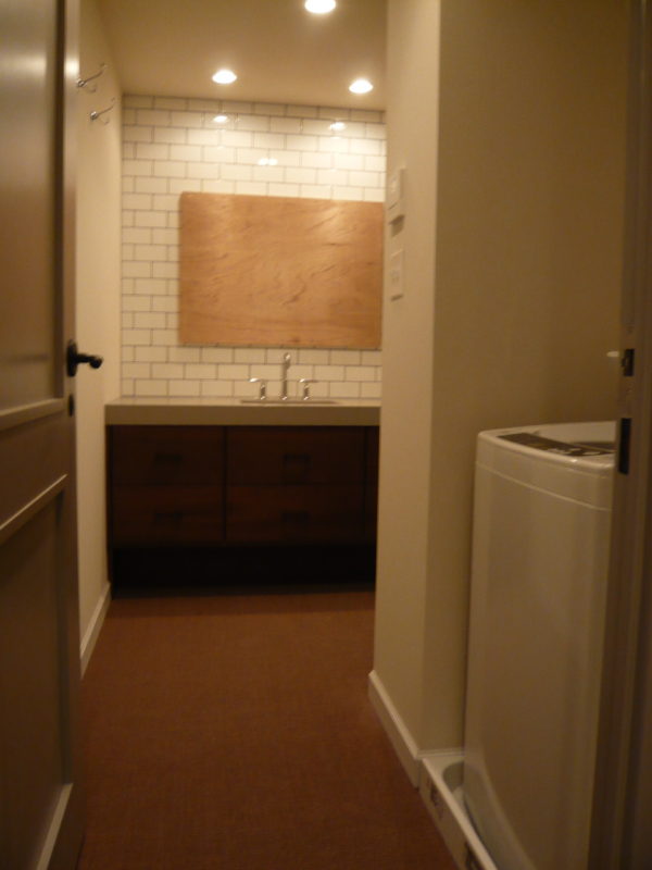 写真正面中央のベニア板の部分は、これから「鏡」を取り付ける位置!!