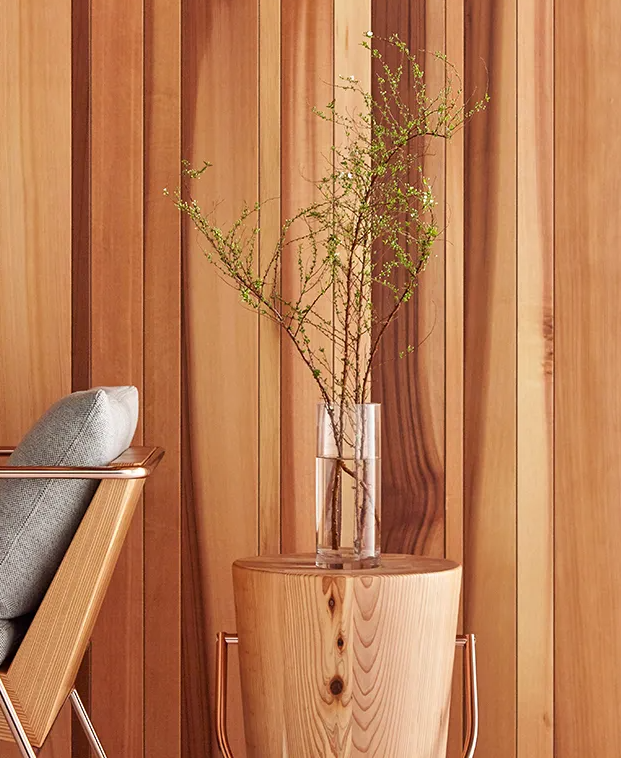 天然木ならではの表情、その優しさを残しつつ、鮮やかな色合い