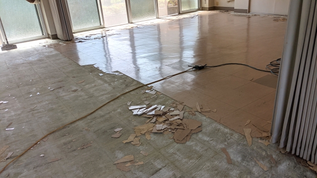 リフォーム工事の「大工」の仕事が、既存床材の剥がし作業