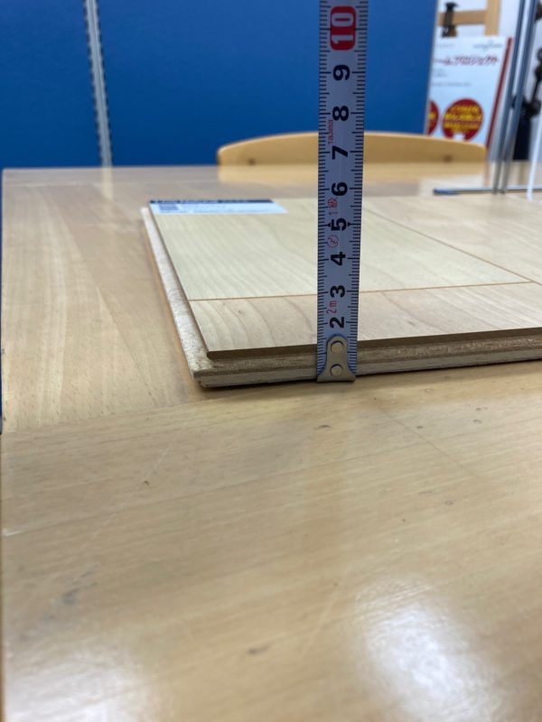 写真のフローリング材は、天然木を0.3ミリほどに割いた単板(たん