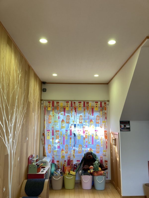 キッズルームの天井に埋め込まれた「ダウンライト」に
