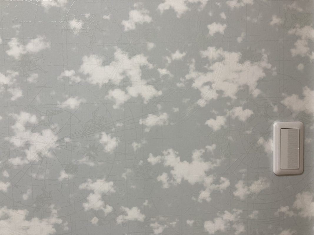 が施された壁紙ですが、夜の消灯後は美しい星座が天井