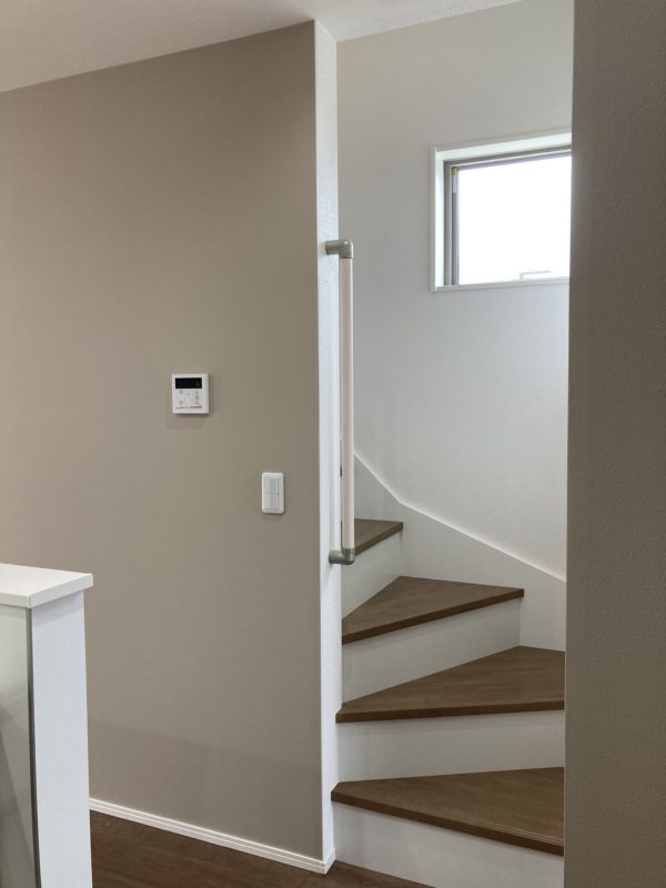 敢えて、壁の全面にトレンドのグレージュカラーの