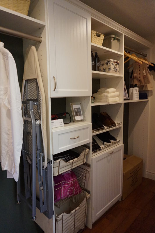 上の家具収納は、左に見えるアイロン台がスライド