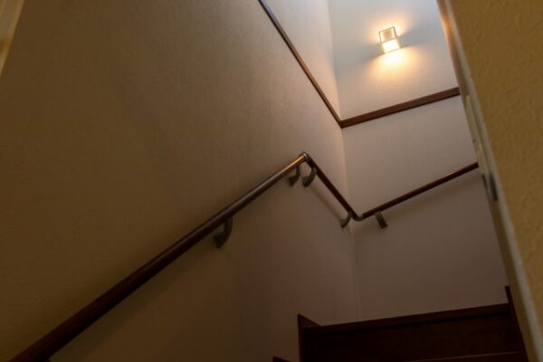 付けられた照明を階段の上と下のスイッチ