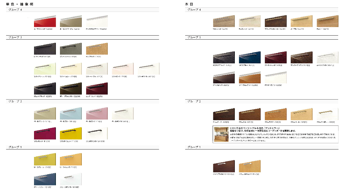 いくつかのデザインごとに[グループA]とか各キッチンメーカーごとの言い方で