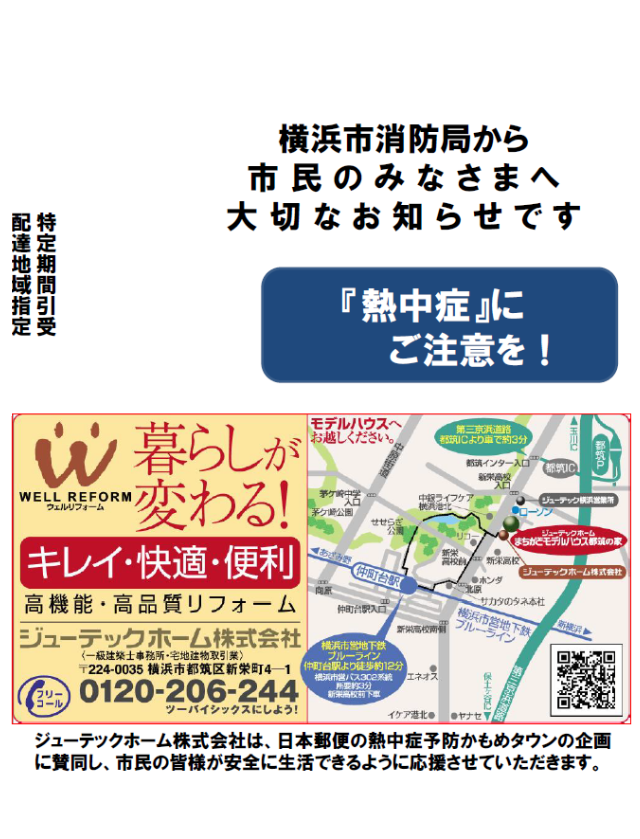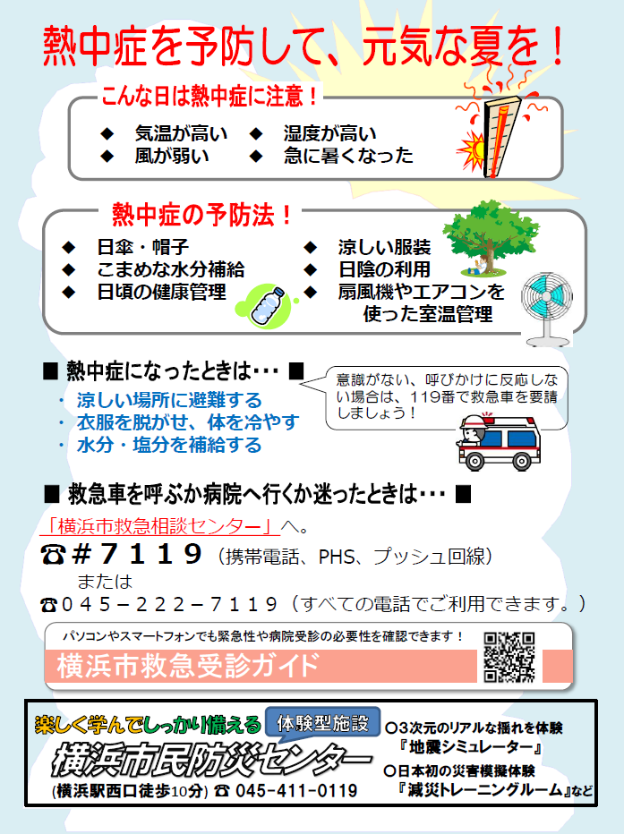 コチラは昨年に、横浜市におすまいの方々に配布された[熱中症予防]の大切さを