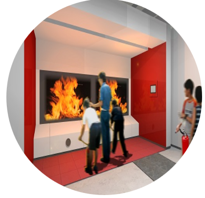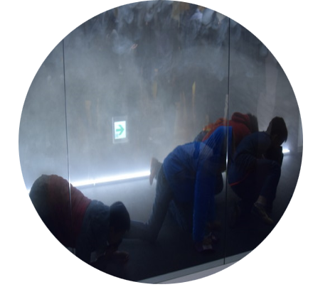 コチラは、煙からの実際の[避難体験]や消火器を使用した[消火体験]ができるブース