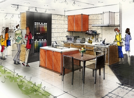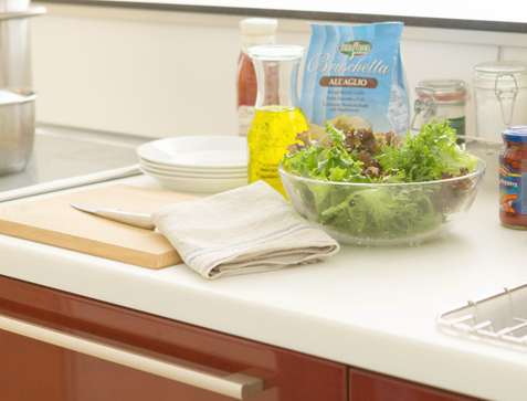 現代のシステムキッチンのカウンターワークトップ(作業台)で使用されている