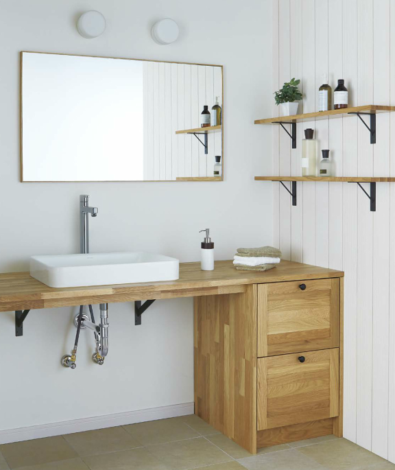その様なお客様にも、ウッドワン社の[無垢の木の洗面台]は、あらかじめ