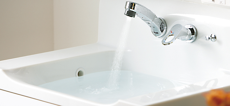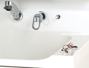 水栓金具が上部についている事で、洗面ボウルの奥行きを大きくすることが