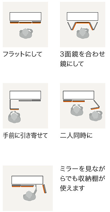 アイデア満載の[ミラー5枚の3面鏡]