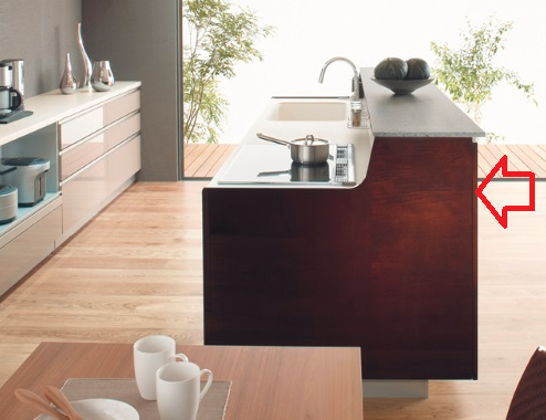 赤い矢印の部分ですが、キッチン(ドルチェ)を真横から見ると、[扉の側面]が