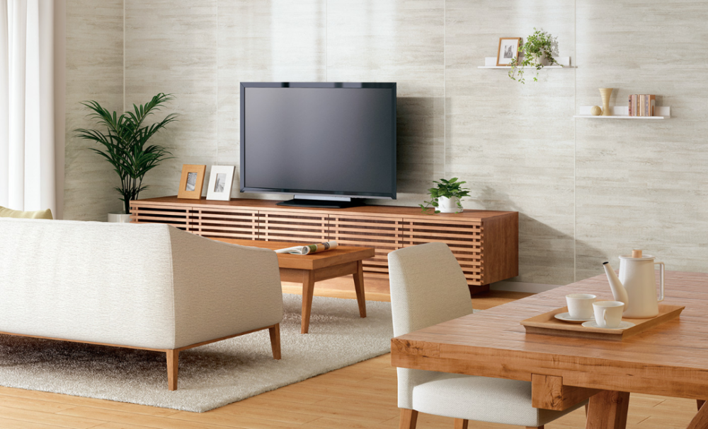 コチラのステキなお住まいのリビングの1面の壁に配された