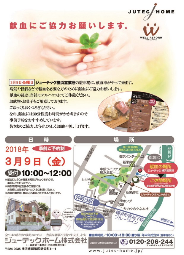 [明日!! 9日(金)の午前中!! ジューテックに”献血バス”がやってきます!!]