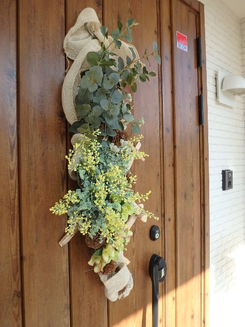 本来は壁に飾るお花ですが、玄関飾りとしてご訪問されるお客様をお出迎え!!