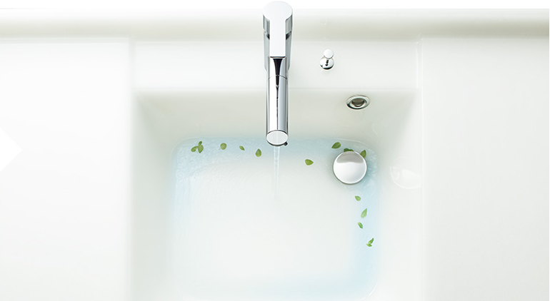 キッチン同様にシンク(ボウル)内の髪の毛や石鹸の泡などを自然に排水口に