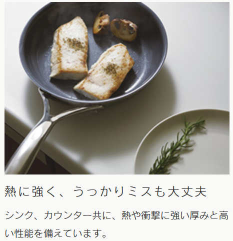 トクラスキッチンのワークトップに使用されている人造大理石は全て自社開発品!!
