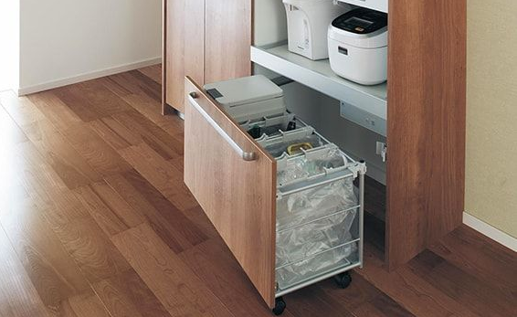 その前に、キッチン廻りの動線にゴミ箱が並ぶのも、せっかくのリフォーム