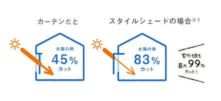 皆さまが熱い陽射しを遮るために使用するカーテンの「2倍」の効果が期待できるんです!!