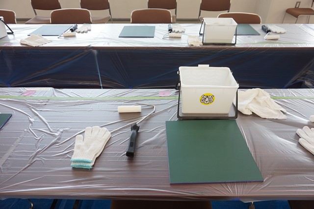 実際の建築で使用する[本物の黒板用塗料(チョークボード)]の”ペンキ塗り”体験と