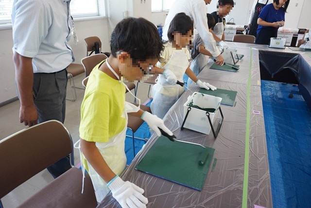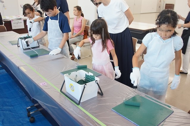 実はブログ担当の私も知らなかった、ペンキを綺麗に塗るコツを子どもたちに直伝!!