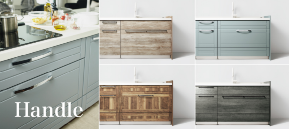上の3枚の表情の違う扉デザインに、それぞれ用意された「把手」にも注目!!