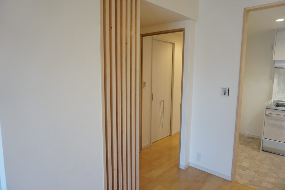 コチラは壁ではなくて格子で洗面室と廊下を間仕切ったマンションリフォーム施工例!!