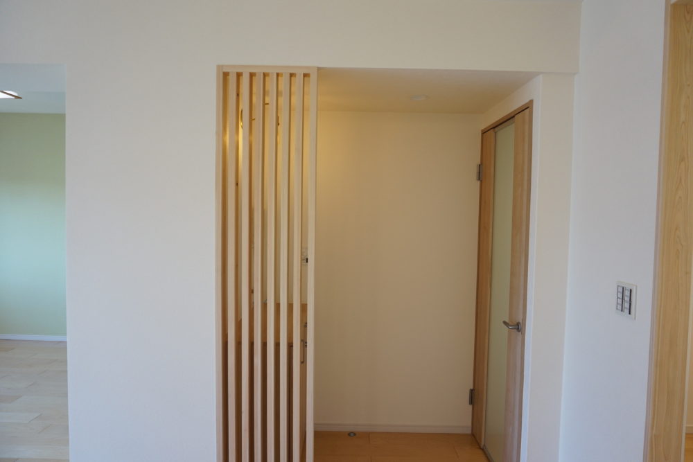 新調した出入口のドアの隣りは、既存の引き戸を解体し開放型の「ウォークインクロゼット」
