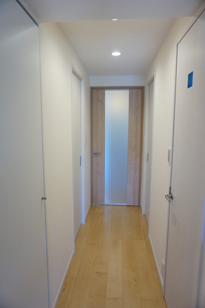 プランとなった為、敢えて目隠し用の室内ドアを設置して、廊下とリビングを隔離!!
