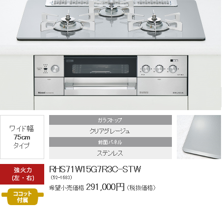 デリシア 100V電源タイプ ワイド幅75cmタイプ