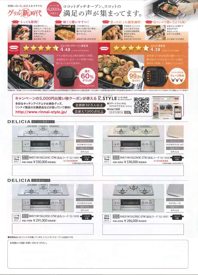 リンナイ “DELICIA” 必ず!もらえるキャンペーン!! のご紹介!!