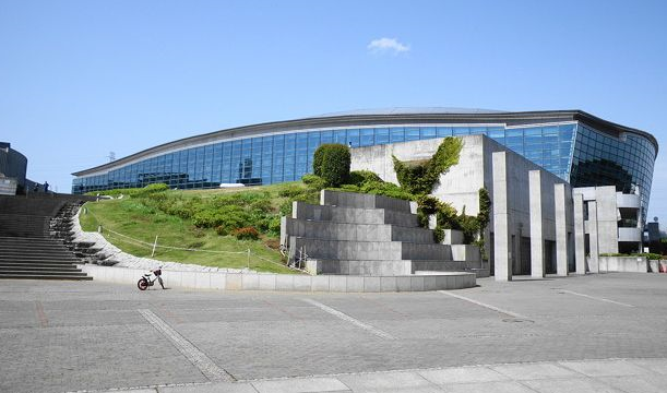 横浜国際プールのメインアリーナ前広場が