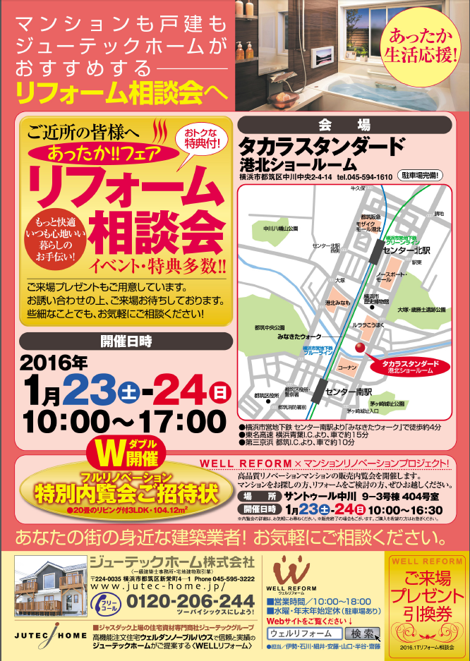 ”W開催” 1月23日(土)・24日(日) リフォーム相談会 in Takarastandard 港北SR 開催します!!