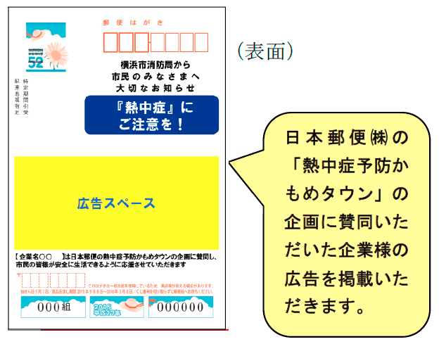 こんなPRが印刷された[熱中症予防]のかもめ〜るが届けられております!!