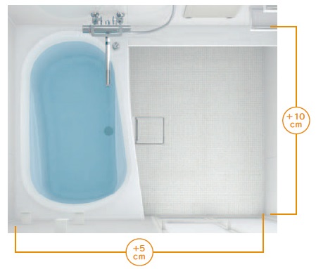 TOTO独自のスリム構造で浴室のサイズアップ機能!!