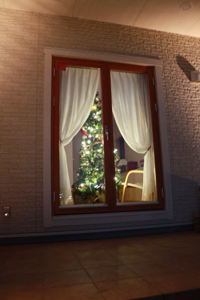 木製サッシ越しに見るクリスマスツリー!!