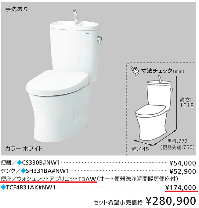 ゆえに… 便座(機能部)も標準商品で、仕様の高い設定からと