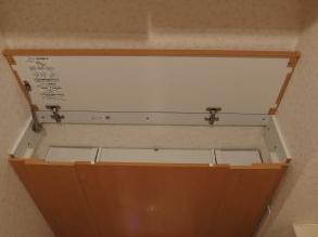便器の背後に設置されたキャビネットの中に