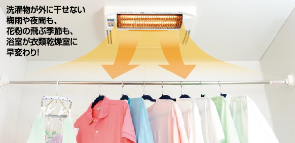 嬉しいのは、この季節や梅雨時の<洗濯物の乾燥機能>