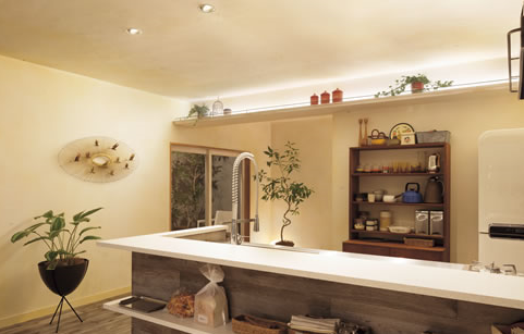 特に間接照明と組み合わせたり、調光機能付きで夜に照明の明暗を