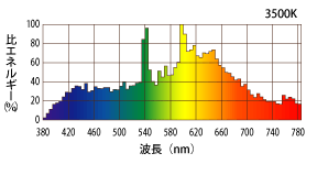 温白色の色温度は、3,500ケルビン(K)くらい。