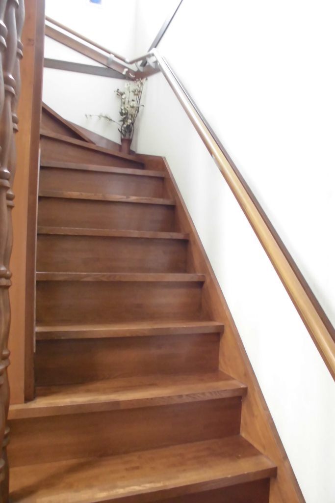 勾配のきつい昔の建物の階段。