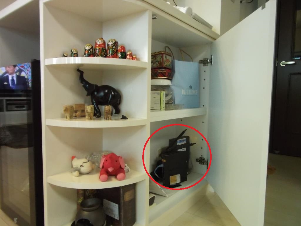 敢えて、この位置の棚を可動棚とすることで、Wi-Fi用のルーターをお客様が