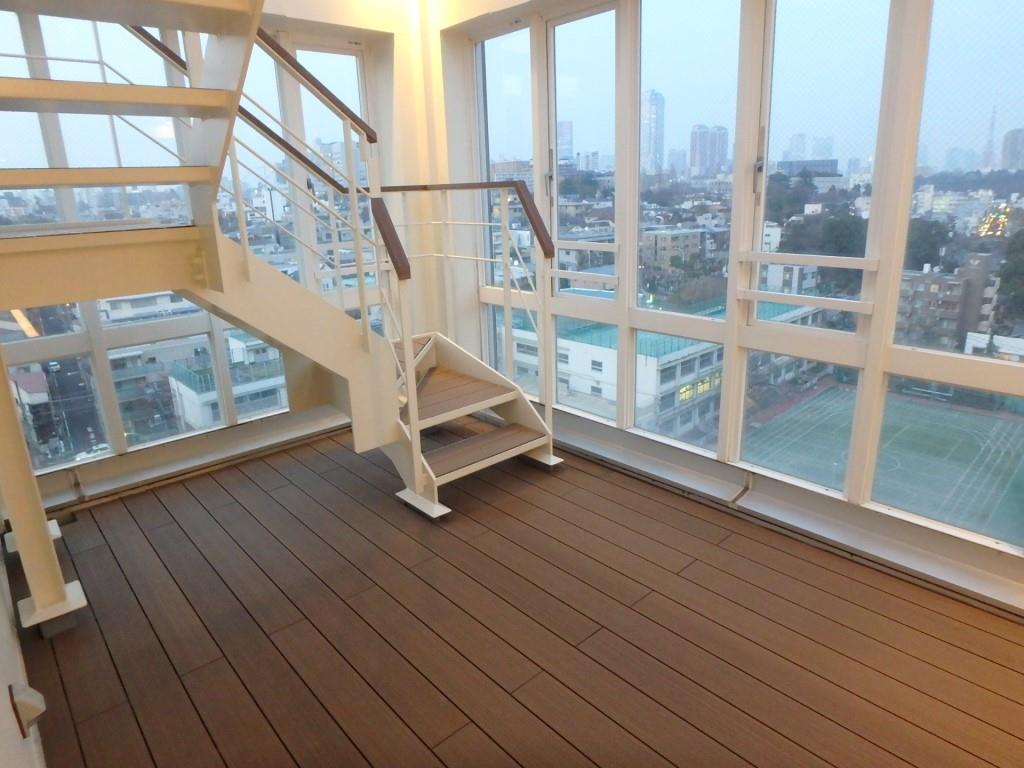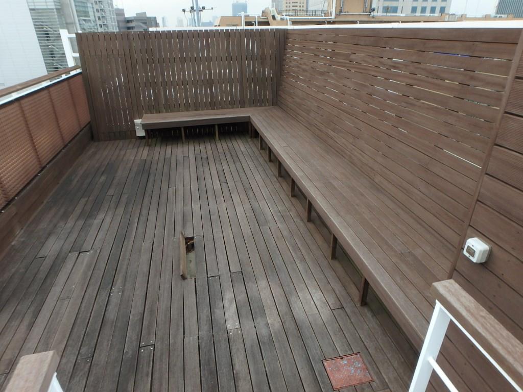 元々は天然木のウッドデッキが採用されていた、とあるマンションのスカイバルコニー!!