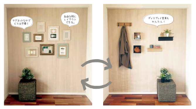 マグネットが使えるアイアンシート加工されている、とってもおトクで使い勝手も良い