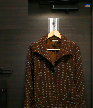 専用の磁石付のブラケットは、自由に洋服のを掛けておく位置も