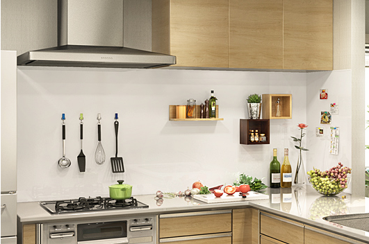 タカラスタンダードのホーローキッチンは、キッチン廻りの壁(キッチンパネル)も