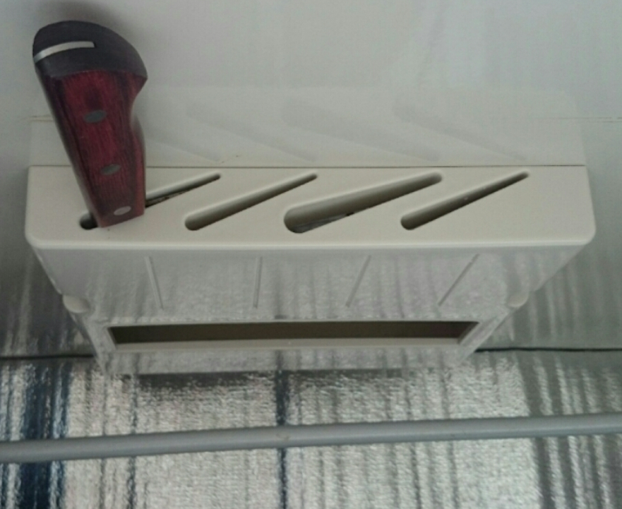収納ラックの上の[包丁刺し]も同様に、高品位ホーロー製でなおかつ