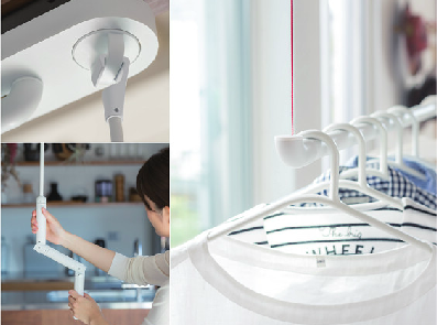 [ありそうで…なかった、ホワイトのランドリーポール(竿)と吊り下げ金物]